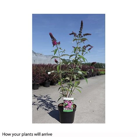 One of the truest of the red varieties, Buddleja davidii ‘Miss Ruby’ is a relatively new cultivar that proved particularly popular at RHS Wisley’s buddleja trials. From midsummer, the fat, magenta-red flower spikes attract clouds of butterflies to their scented blooms, and provide plenty of colour right through to autumn. This medium sized shrub is ideally proportioned for smaller gardens and suitably showy too. Better still, this deciduous shrub is virtually sterile so you won’t be troubled with unwanted seedlings. Height: and spread: 200cm (78″).