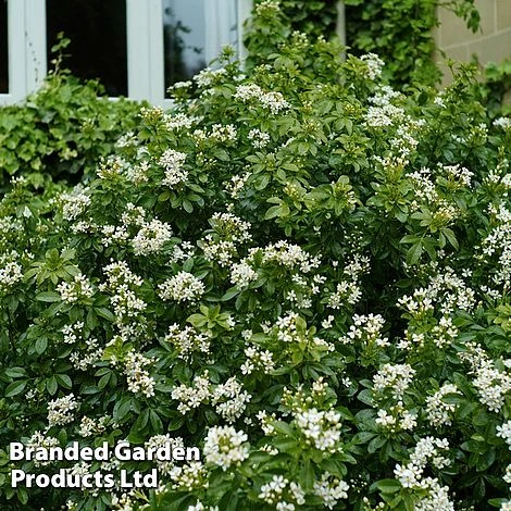 - Choisya Ternata (Mexican Orange Blossom) – Glossy, evergreen foliage and fragrant white flowers from late spring, and then again in late summer and autumn. A robust shrub that is very tolerant of difficult growing conditions, including coastal gardens. Height and spread: 2.5m (8′).