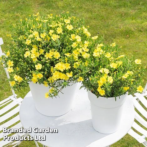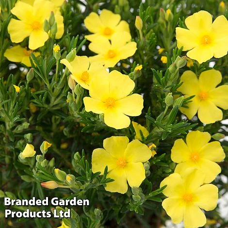 This dwarf evergreen shrub forms neat, cushiony mounds of small, linear foliage and masses of long-lasting, sunshine-yellow flowers. Halimium ‘April Sun’ is drought tolerant once established, low-maintenance and disease-free. The only attention it requires is a light trim after flowering to keep its dense, bushy form. This resilient and perfectly behaved shrub is an excellent choice for patio containers and makes superb ground cover or edging in rockeries and hot, dry borders. From spring to the end of summer, it bears an abundance of saucer-shaped, five-petalled, golden-yellow flowers which are a magnet for pollinators.