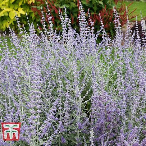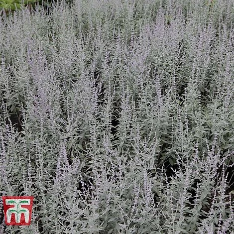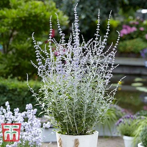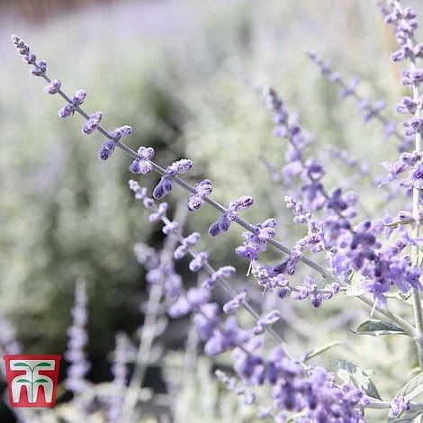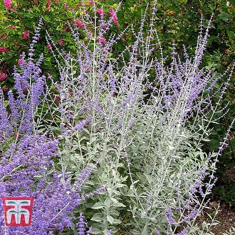 Late summer panicles of lavender blue flowers sit above a strong framework of metallic silver stems. Perovskia atriplicifolia ‘Silvery Blue’ is particularly appealing for its aromatic, shimmering foliage that leaves other varieties looking dull in comparison. Russian Sage is a versatile hardy shrub that loves a sunny spot, and happily tolerates drought and exposed coastal positions. Grow it in large swathes for maximum impact, where it will attract plenty of butterflies and pollinating insects to your garden borders. Height and spread: 60cm (24″).