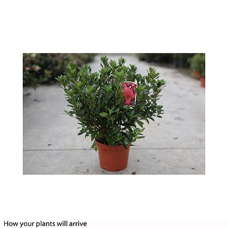 Rhododendron ‘Madame Galle’ is a small, compact Evergreen Azalea that is absolutely perfect for growing in containers on the patio. Equally at home at the front of a shrub border, or even included in a flower bed, this hardy little shrub will give you year round enjoyment no matter what. Small, dark green, glossy leaves sit behind the striking carmine red blooms in late spring and early summer when this plant is definitely at its best. Easy to grow, needing only minimal maintenance, this rhododendron will continue to please for many years to come. Height: 100cm (39″). Spread: 100cm (39″).