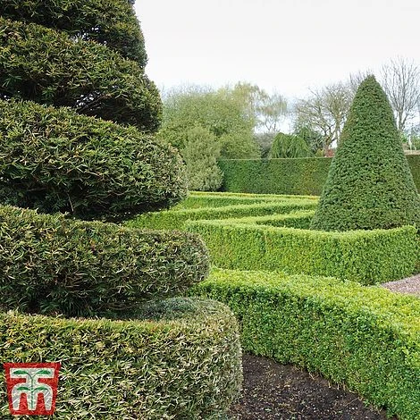 This English Yew is a medium-sized bushy evergreen tree with narrow, leathery, very dark green leaves. Male plants produce yellow cones in spring and female plants produce red cup-shaped non edible autumn fruits. Tolerant to dry soils and a good all round tough plant. They can be grown as hedges and are ideal for backdrops in herbaceous beds or as a general formal hedge. Unsurprisingly, Taxus baccata has been awarded a prestigious RHS Award of Garden Merit. Height: 20m (66′). Spread: 10m (33′).